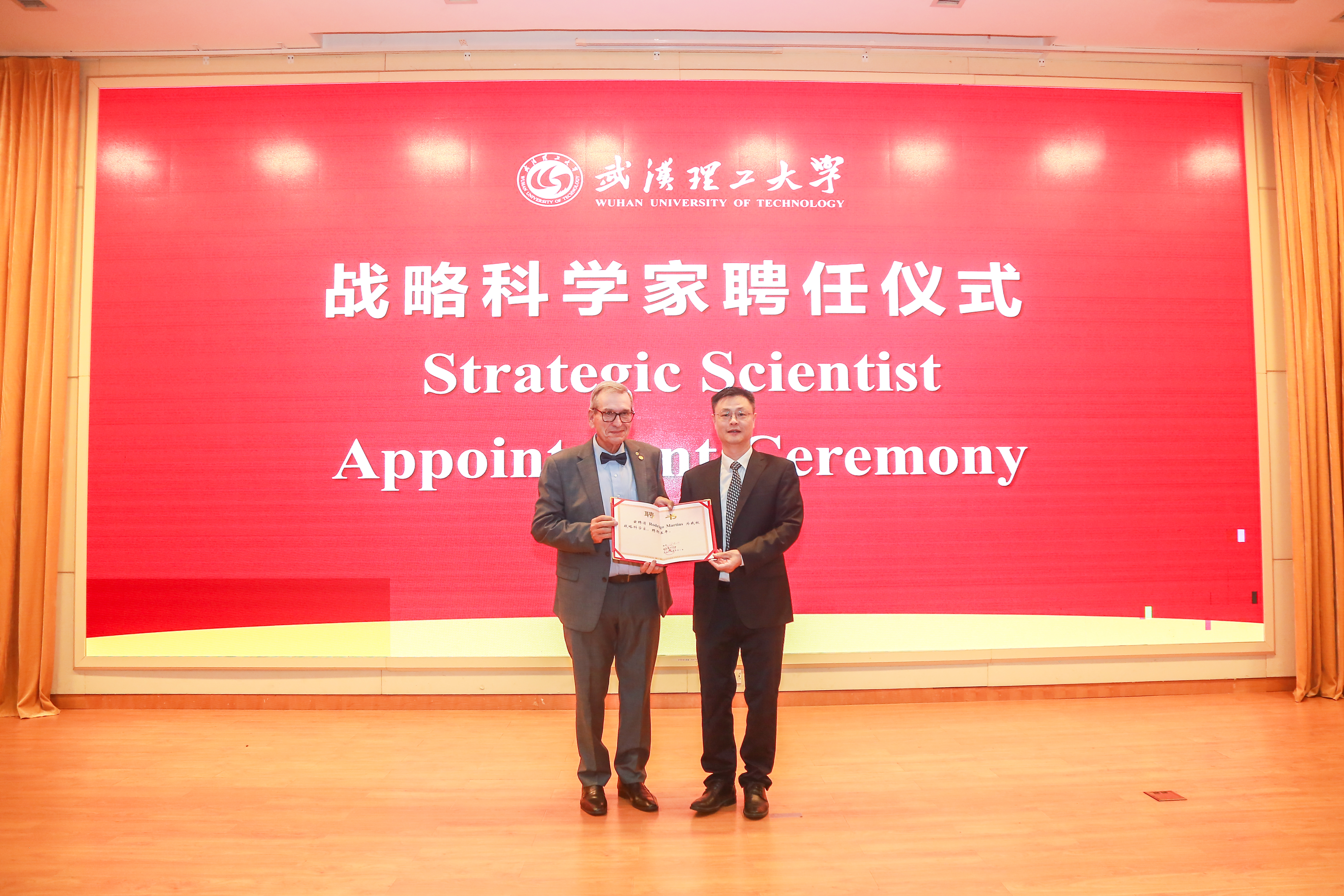 10月1日,马丁斯院士在校受聘我校战略科学家。校党委书记孟芳兵会见马丁斯院士,交流中欧高校科技合作发展的方向,期望共同努力推动武汉理工大学高质量发展,以及中欧科学技术和高等教育的深度融合。校长王发洲出席聘任仪式并颁发证书,副校长罗蓉主持仪式。
