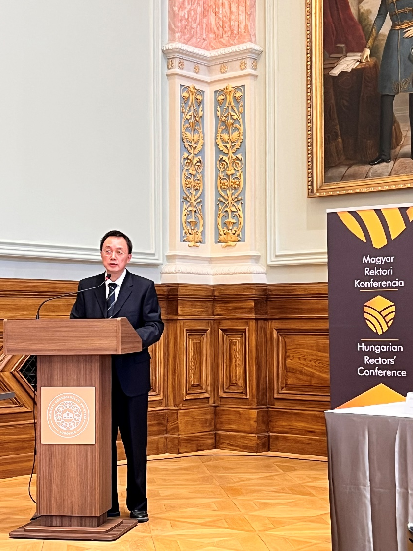 9月23日,中国—中东欧国家高校联合会第十次会议在匈牙利布达佩斯国家公共服务大学举行。来自18所中国高校和匈牙利、波兰、黑山等国家的联合会成员院校代表、政府官员以及教育界专家学者围绕“数字时代下中国—中东欧国家教育合作未来十年的机遇与展望”主题进行了深入探讨。会上,刘春江副校长作了题为“汇聚国际学术网络动能,共筑工程科技创新高地”的大会报告,介绍学校近年来在工程科技领域国际网络方面的实践经验和特色做法,对学科建设共同体创新路径提出了建议和展望,并发出诚挚邀请,欢迎匈牙利以及中东欧青少年来学校攻读学位或进行中短期交流学习。
