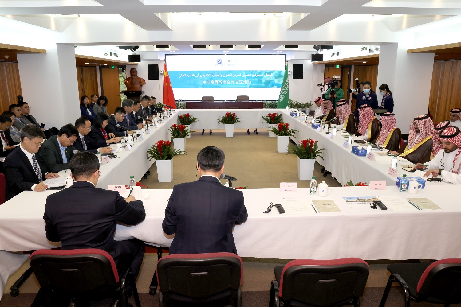 本次活动系庆祝中沙建交35周年重要活动之一,现场签署多项合作协议。北京大学、浙江大学等9所高校代表参与座谈,我校国际处负责人陪同出席。
